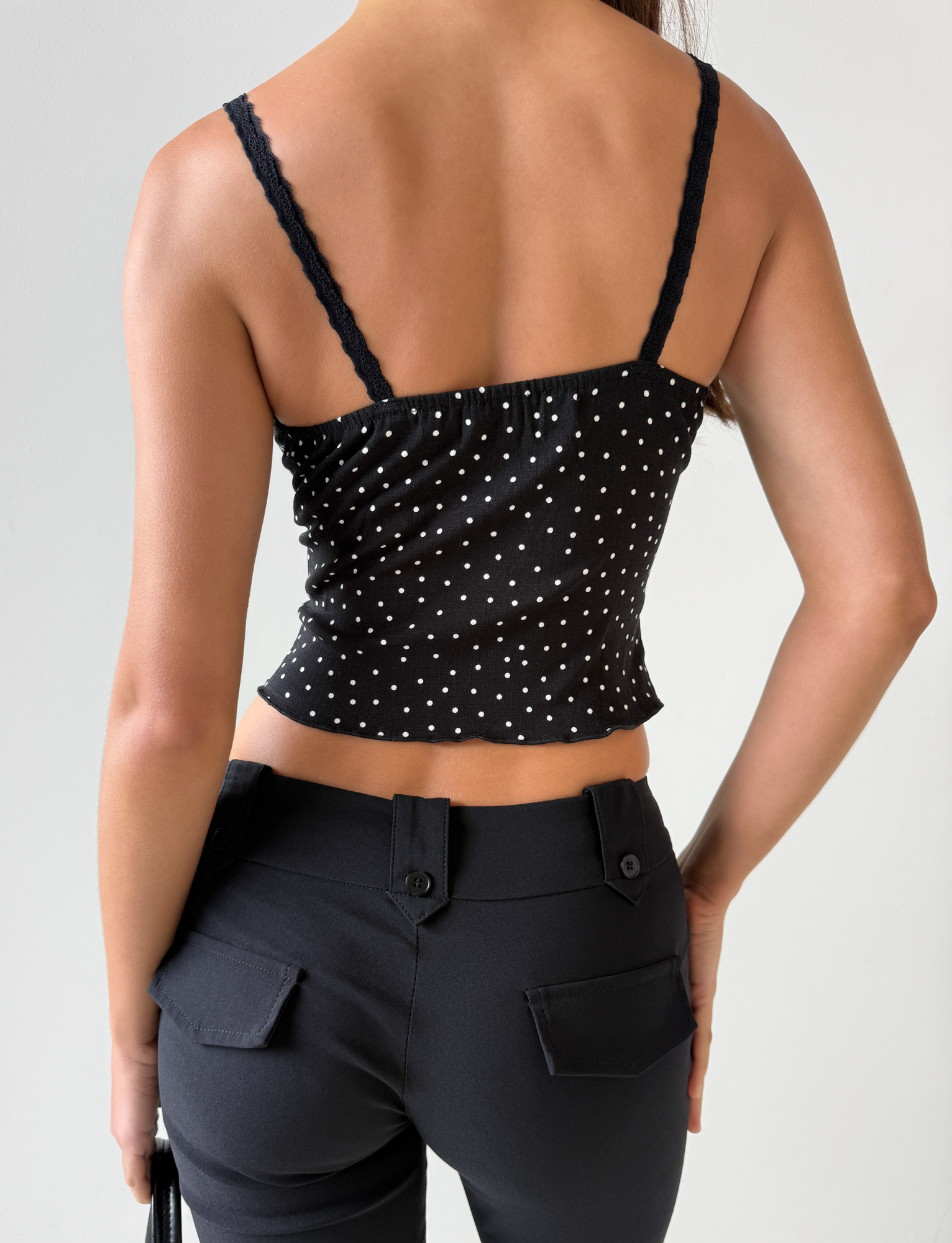 BAILEE CAMI TOP - BLACK POLKA